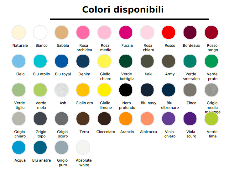 INVIATE COLORE ,TAGLIE E GRAFICA DESIDERATA